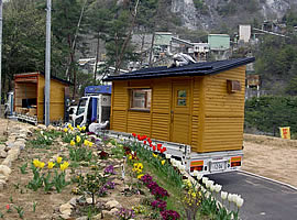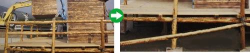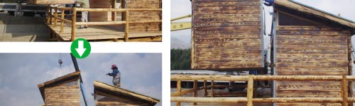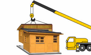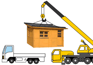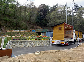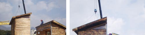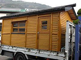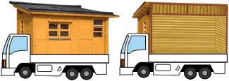 例えば2Wタイプの小屋は2つに分けて運搬。土台の上で片方ずつ設置していきます。