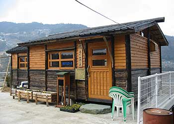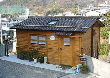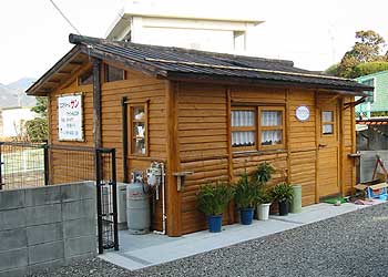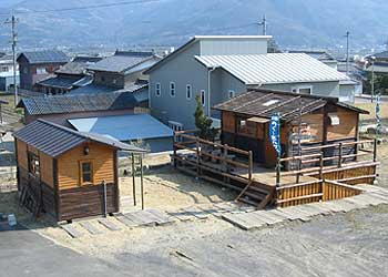 会社事務所 町村ごとに受付事務所が必要だという建築関係の会社事務所です。サイズの違うらく~だハウスを並列に組み合わせて上手く利用しています。