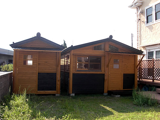 H24.9.11に徳島市内K様邸にて、らく~だハウス(1W)を納入させていただきました。 先のらく~だハウス(2W)の横に設置させて頂き、木質の素敵な雰囲気となっています。 施主様にも大変喜んで頂きました。