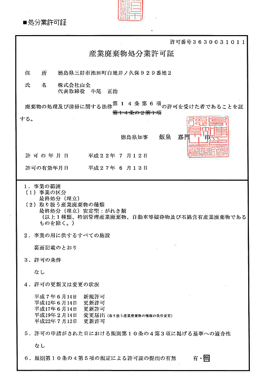 HOMEアスコ処理場>許可証