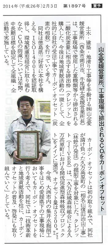 【工事現場でのCO2カーボン・オフセットの取り組みが、