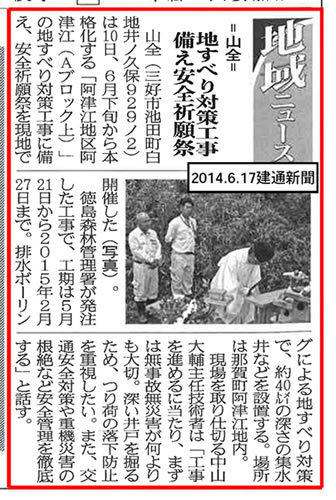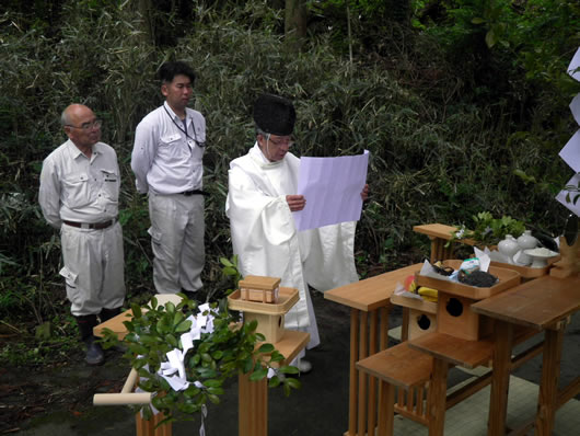 那賀郡那賀町阿津江地区にて、これから本格的に工事を開始するのに先立ち、地元神主様に安全祈願祭を実施して頂きました。