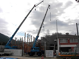 徳島県三好市の西井川小学校改築工事の現場が、平成26年度内の完成を目指して、現在最盛期を迎えています。