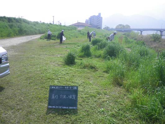 加茂川の散策コースにもなっている同地区は、これから秋にかけて地元行事が行われる予定なので、環境美化活動を通じて気持ち良く楽しんで頂きたいと思います。