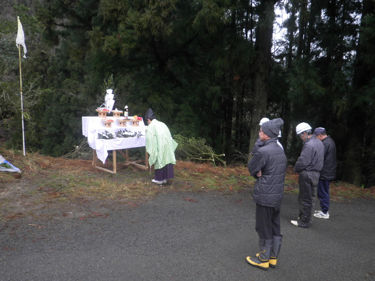 平成27年1月16日に三好市池田町大利地区において、砂防堰堤工事を施工するのに先立ち、地元神主様に安全祈願祭を実施して頂きました。