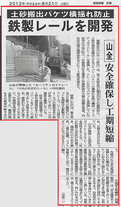 H24.8.21の徳島新聞の記事に「セーフティガイドレール」が掲載されました。