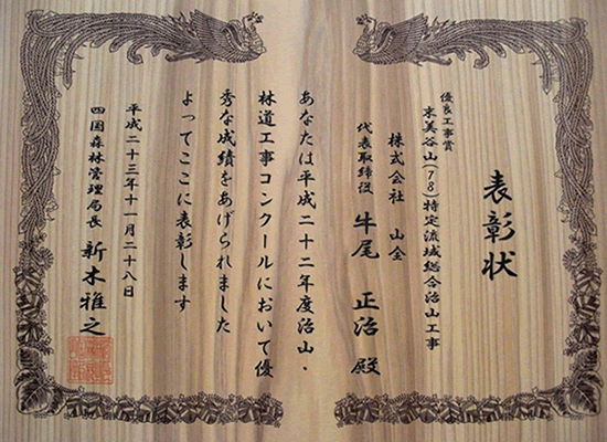 四国森林管理局より、治山優良工事表彰を受賞しました。