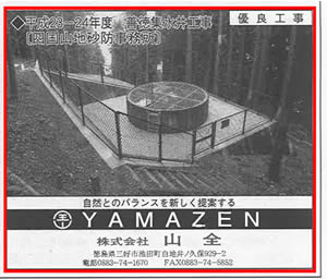 弊社が平成24年度に施工した平成23-24年度 善徳集水井工事の現場が優良工事として、