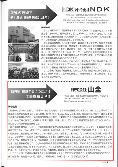 株式会社東京商工リサーチ高松支社が発行しました「エラベル2016四国版 四国八十八ヶ所企業巡り」の特集ページにおいて、弊社がキラリ!輝く(公認)元気企業として掲載されています。また、徳島県の厳選企業88社にも選ばれました。学生さんを中心としました多くの方にご覧になって頂きたいと思います。