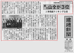 四国地方整備局 工事成績ランキング(総合)において第3位となりました。