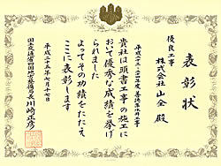 【株式会社らく~だ】 ピカコン|らく~だハウス|イーヤマ処理場|会社概要|リンク集|サイトマップ|お問い合せ|HOME 【株式会社山全】土木工事|建築工事|地すべり工事|保有機械|社会貢献|保有資格 | 表彰工事一覧|メディア情報 土木施工技術論文|県産スギ型枠使用の取組|安全教育|セーフティガイドレール|排水管エアー洗浄工|アスコ処理場|会社概要 |
